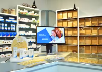 Auf 200m² bieten wir Ihnen ein breites Angebot von qualitativ einwandfreien Produkten zur Erhaltung und Wiederherstellung der Gesundheit sowie ein grosses Nebensortiment zur Gesundheits- und Körperpflege.